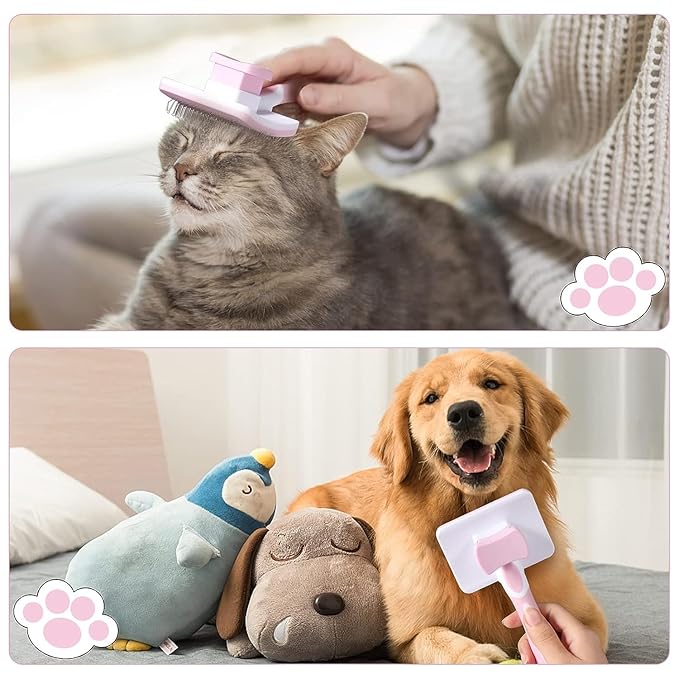 Self Cleaning Slicker Brush for Dogs and Cats - Retractable Bristles for Easy Hair Removal - Grooming Tool for Long and Short Hair - Effortless Pet Shedding Solution (Pink)