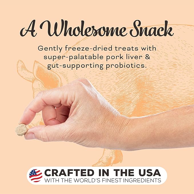 - Premium freeze-dried liver treats for dogs. Made with crate-free pork raised without antibiotics, steroids or added hormones. No grain, corn, wheat, or soy