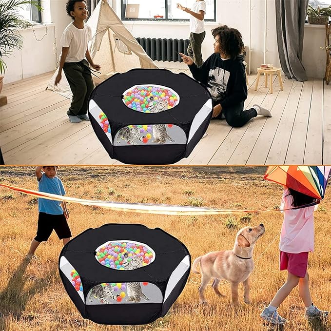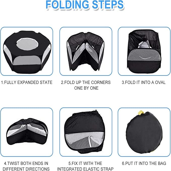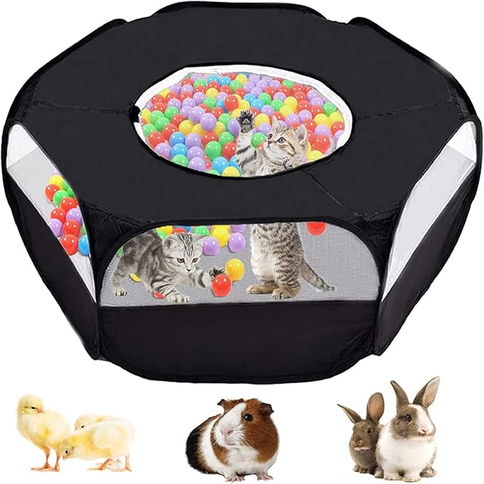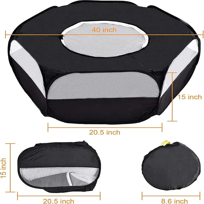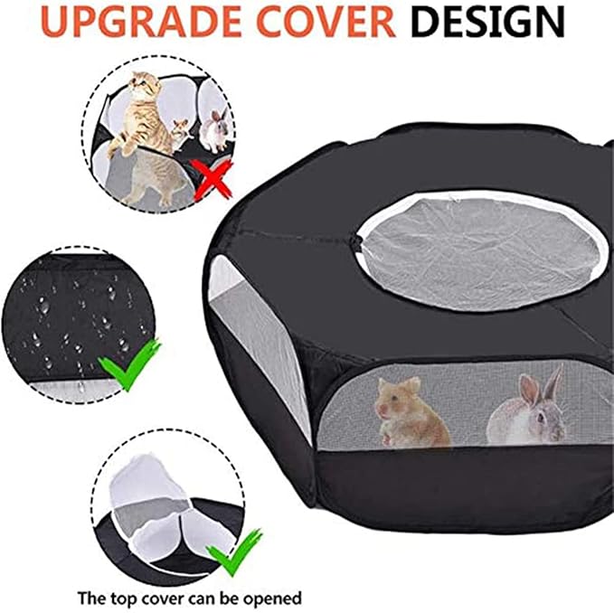Small Animal Playpen,Portable Small Animal Cage Tent Breathable Pet Playpen Cage Tent Pop-Up Outdoor&Indoor Exercise Fence for Hamster Guinea Pig Rabbit Puppy Hedgehog (Black with Cover)