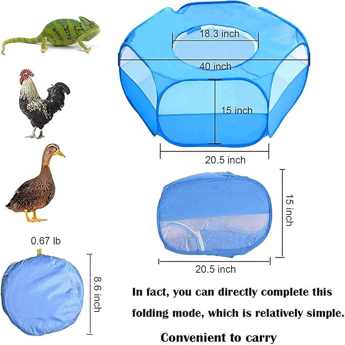 - [UPGRADED DESIGNS] The sides of this small animal playpen composes of mesh and cloths. The mesh makes it perfect to be able to keep an eye on pets, while the cloths can prevent pets biting holes for escaping out of the cage. It also has a zipper-able top cover to prevent pets jumping out.