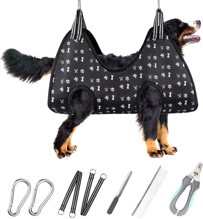 Pet Dog Grooming Hammock Harness for Nail Trimming (XXL 120lb), Dog Sling for Cutting Nail, Dog Hanging Holder Hanger for Clipping Nail with Nail Clippers, Nail File, Pet Comb