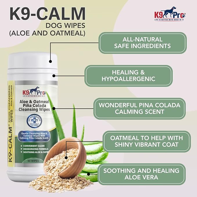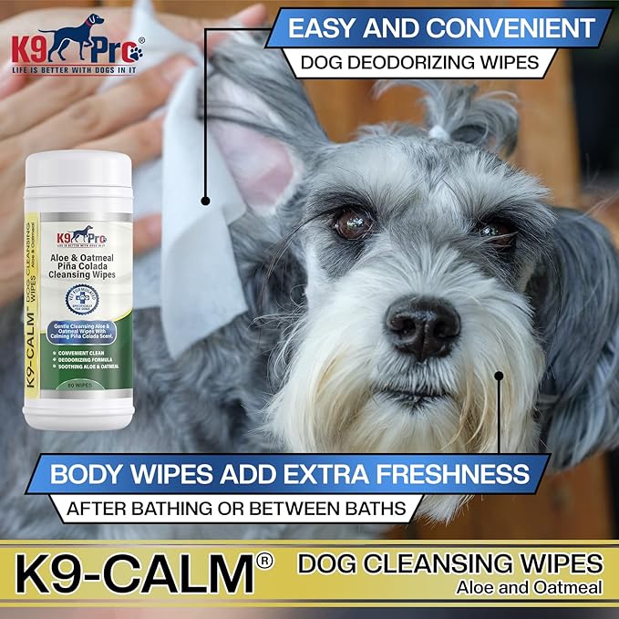 - #1 Vet Formulated Dog Wipes to Clean, Soothe, & Deodorize! If you love to keep your pup clean and happy, then you will adore our all-natural pet wipes for dogs! These K9 Pro Aloe & Oatmeal Dog Cleansing Wipes keep your dog smelling fresh and clean… with no irritation. Our single-use disposable wipes come with 60 premium wipes to make it easy to clean your dog's face, paws, and body anytime. Life is better with dogs in it