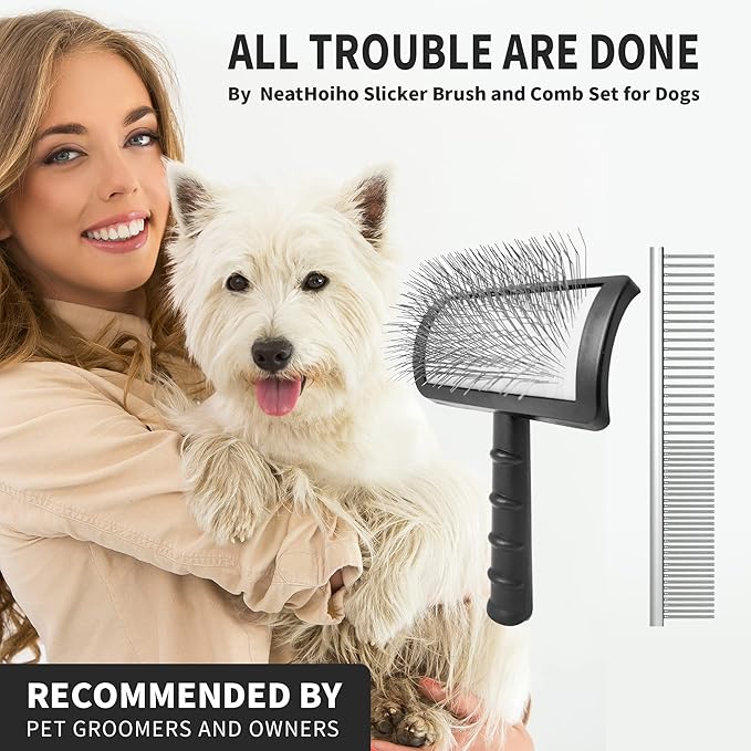 • PERFECT HAIR REMOVAL AND GROOMING SET: The NeatHoiho grooming set includes a slicker brush and a heavy-duty metal comb , so you can groom your dog or cat with comfort at home.The slicker brush and comb set is perfect for keeping short or long hair clean and tangle-free, as well as for removing dirt and dander from pets with sensitive skin