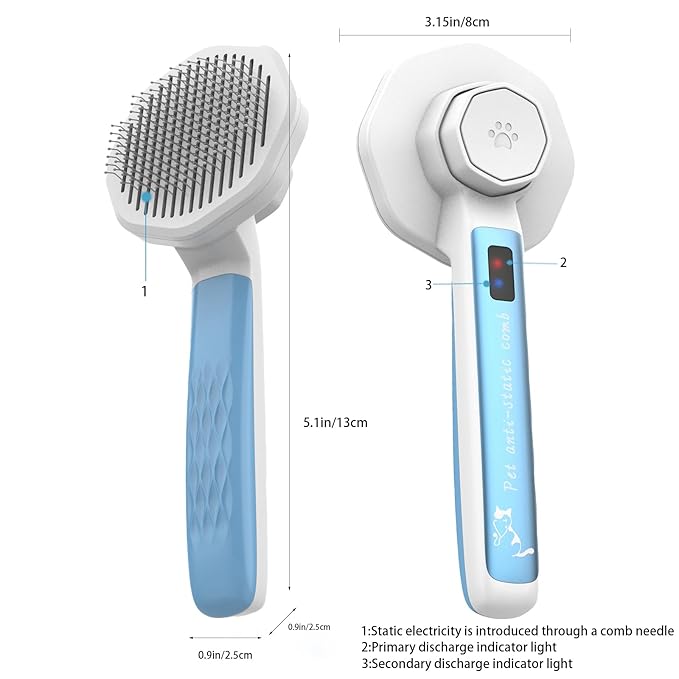 Self-Cleaning Pet Brush for Dog and Cat Long Hair - Static Electricity Eliminator Beauty Product (Blue)
