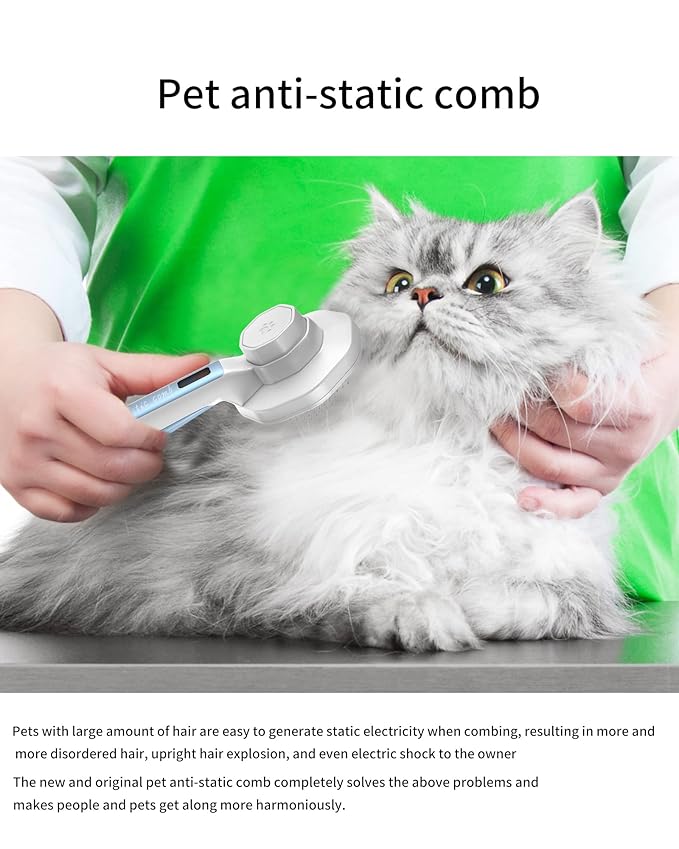 - 【Practical electrostatic function 】Static electricity is generated in a particularly dry environment. For example, in autumn and winter, some people who keep long haired pets will have a particularly obvious feeling. In dry weather, long haired pets will have hair explosion. At this time, this anti-static comb can effectively eliminate static electricity, and the static indicator light will be lit because of static electricity, which is why this light does not need charging or batteries .