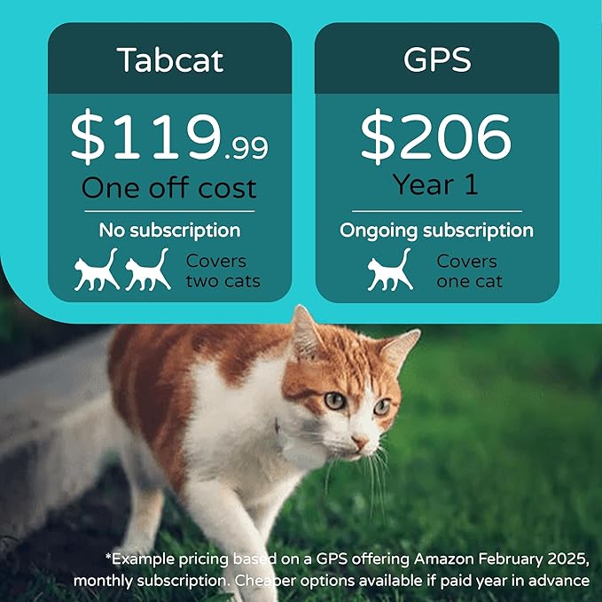 - NO SUBSCRIPTION NEEDED: No monthly subscription fee, no satellite signal, no mobile phone app, no data – All you need is our TabCat Pack to keep your cat safe and found. A single one off payment and you can find your cat for years. This removes the long term fees associated with GPS trackers, especially with multi-cat households
