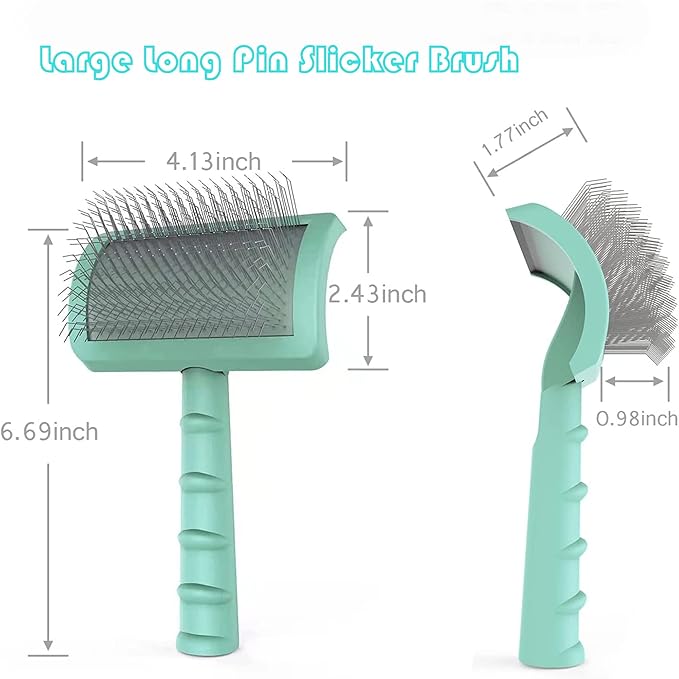 - 🐶🐱【Support Most Dogs&Cats】Dogs like Giant Poodle, Samoyed, Great Pyrenees, Poodle, Bichon Frise, West Highlander, Pomeranian, Silver Fox, etc. And Cats like Ragdoll, Persian, Maine Coon, Chinchilla, Oriental Longhair, British Longhair, etc. It’s smart of you to choose the long pin slicker brush if you are very picky with pet grooming tools. Don't hesitate to Add to Cart and get this large long pin slicker brush.