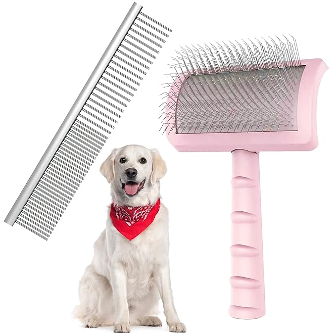 - PERFECT HAIR REMOVAL AND GROOMING SET: The NeatHoiho grooming set includes a slicker brush and a heavy-duty metal comb , so you can groom your dog or cat with comfort at home.The slicker brush and comb set is perfect for keeping short or long hair clean and tangle-free, as well as for removing dirt and dander from pets with sensitive skin