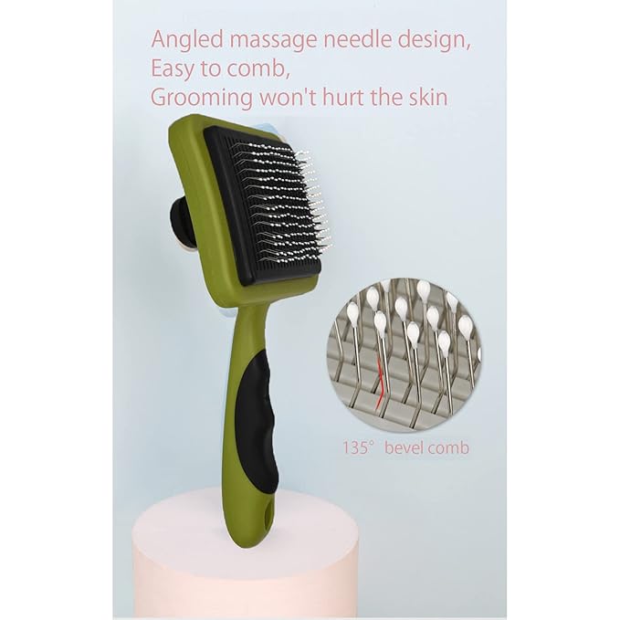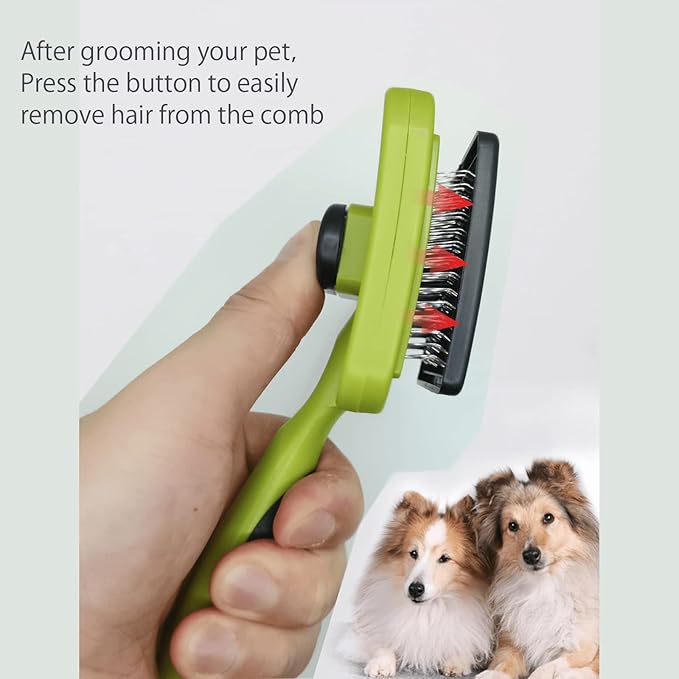 IOO Grooming Brush For Cat And Dog, Self Cleaning Slicker Brushes For Pet, Pet Grooming Brush Can Gently Removes Loose Undercoat, Mats Tangled Hair Slicker Brush for Pet Massage Cleaning (green)