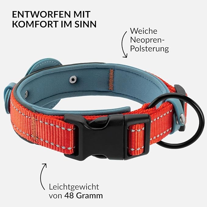 - Comfortable Fit - This air tag dog collar was made from the highest quality of nylon, and the dog airtag holder features neoprene lining on the inside for extra comfort. Our airtag dog collar holder is lightweight and travel-friendly.
