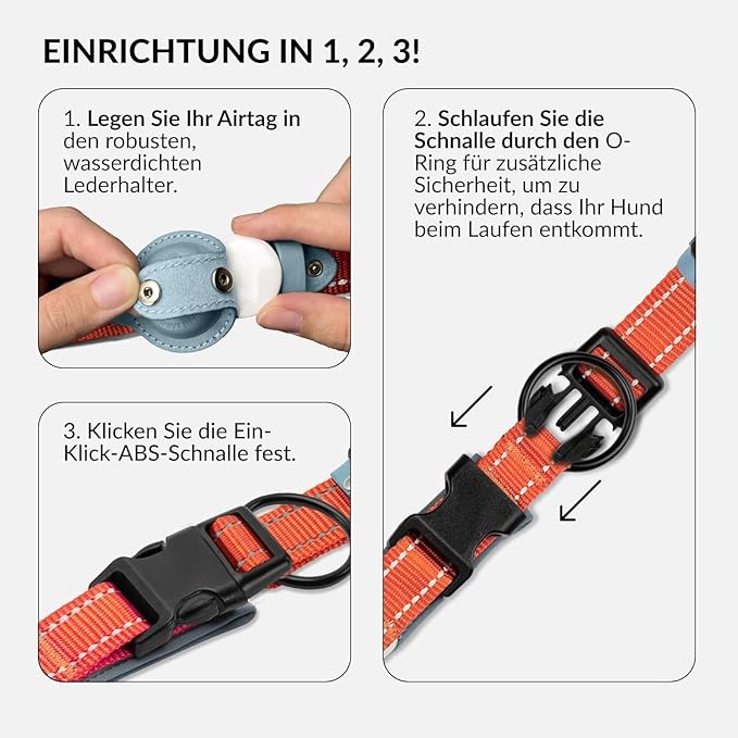 - Designed for the Apple AirTag - This dog tracking collar was designed to fit the Apple AirTag. Our airtag dog collar has a double snap and small opening to ensure your airtag's placement. Plus, the air tag collar has reflective stitching for nighttime walks.