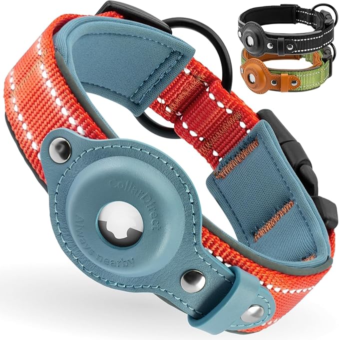 - Designed for the Apple AirTag - This dog tracking collar was designed to fit the Apple AirTag. Our airtag dog collar has a double snap and small opening to ensure your airtag's placement. Plus, the air tag collar has reflective stitching for nighttime walks.
