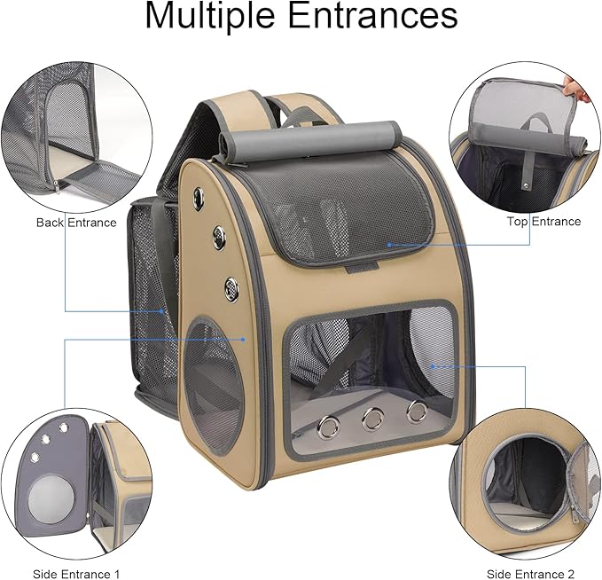 Expandable Pet Carrier Backpack for Cats, Dogs and Small Animals, Portable Pet Travel Carrier, Super Ventilated Design, Airline Approved, Ideal for Traveling/Hiking/Camping, Khaki