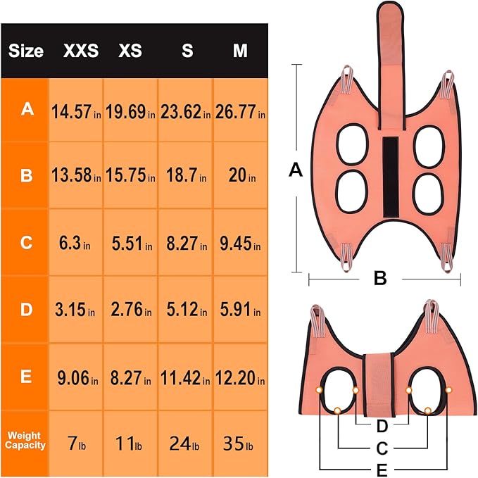 - This XXS size pet grooming hammock is suitable for puppy /extra small dogs, weighing under 7lb. Please check your pets' body size data and make a reference of the size form in main picture before purchase.