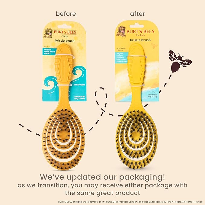 Burt's Bees for Pets Bristle Brush with Natural Boars Hair & Nylon with Handle Made from Recycled Plastics Collected from Coastal Communities | De-Shedding Dog Brush | Eco Friendly Dog Grooming Brush