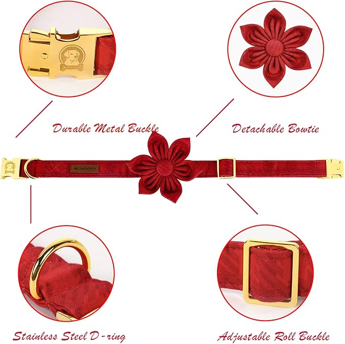 - Quick Release Metal Buckle: Metal dog collar with flower is durable and worn. Dog collar bow tie with safety snap-on metal buckle makes you can quickly and easily remove your dog.