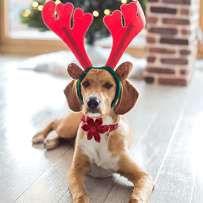 Christmas Dog Collar, Dog Collar with Flower, Adjustable Flower Dog Collars, Boy Girl Dog Collars for Small Medium Large Dogs