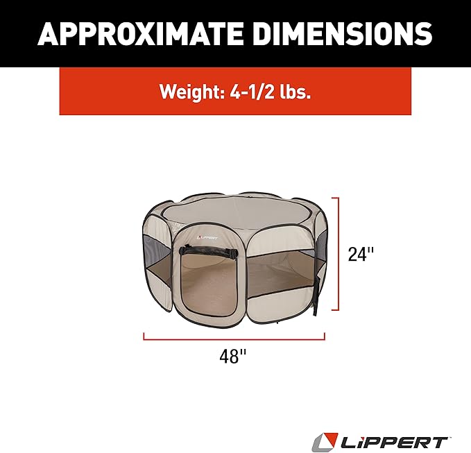 Lippert Soft-Sided, Foldable and Portable Pet Playpen for Camping, Large/X-Large (2021150642), Tan