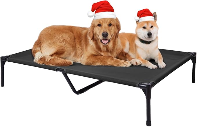 pettycare Elevated Outdoor Dog Bed - Dog Cots beds for Large Dogs XL, Heavy Duty Raised Dog Bed Waterproof, Cooling Elevated Dog Bed with Washable Teslin Mesh, Durable, Non Slip, 49 Inches, Black