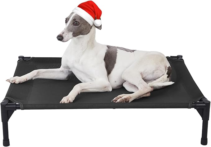 pettycare Elevated Outdoor Dog Bed - Raised Dog Bed for Large Dogs, Heavy Duty Dog Cot Bed Waterproof, Cooling Elevated Dog Bed with Washable Breathable Teslin Mesh, Durable, Non Slip, 42 Inch, Black