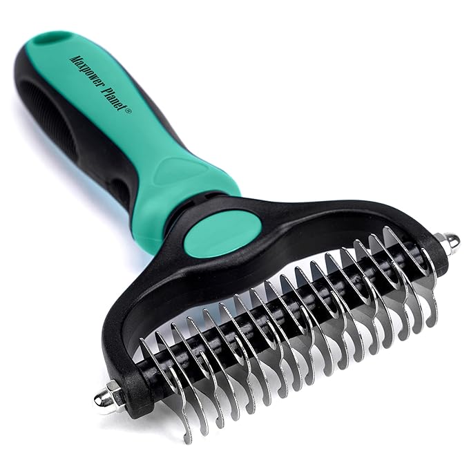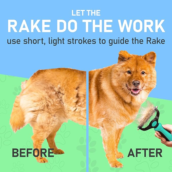 - EFFECTIVE DESHEDDING TOOL & COMFORTABLE TO USE: The perfect cat brush or dog grooming brush solution for pets with thick fur or dense double coats. This grooming rake for dogs is designed with a lightweight, comfortable, non-slip rubber handle to keep the brush from moving around as you groom your pet.