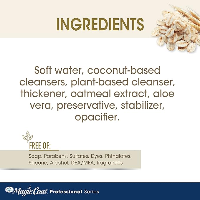- pH-balanced dog oatmeal shampoo is free of DEA, MEA, phthalate, parabens, dye, sulfates, alcohol, soap, and silicone