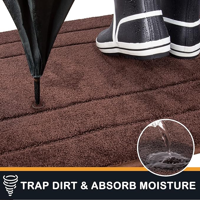- TRAP DIRT & MOISTURE: Countless polyester fibers can effectively catch water and dirt off the bottom of shoes. Our dirt trapper doormat can keep indoor areas of your home or business clean, dry and safe, especially for the rainy, snowy, or muddy weather. For the best results, use the largest indoor door mats you have space for.