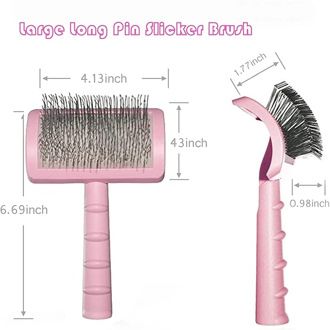 - 🐶🐱【Support Most Dogs&Cats】Dogs like Giant Poodle, Samoyed, Great Pyrenees, Poodle, Bichon Frise, West Highlander, Pomeranian, Silver Fox, etc. And Cats like Ragdoll, Persian, Maine Coon, Chinchilla, Oriental Longhair, British Longhair, etc. It’s smart of you to choose the long pin slicker brush if you are very picky with pet grooming tools. Don't hesitate to Add to Cart and get this large long pin slicker brush.