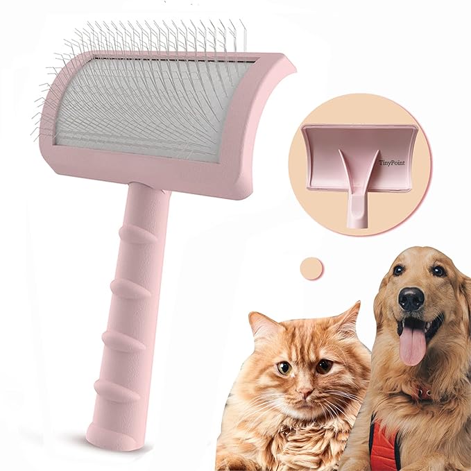 - 🐶🐱【TinyPoint Large Long Pin Slicker Brush】CONFIRM TinyPoint logo behind slicker brush when you receive the package. The dog grooming brush is specifically developed for long-haired dogs, 25mm(1'') long stainless steel pin and 135° curved pins brush, which more fit to dogs and cats, the dog slicker brush with firm stainless-steel pins that easily brush away loose hair, undercoat, and tangles. Designed longer than standard pins to remove hair, save time and energy during pet grooming.