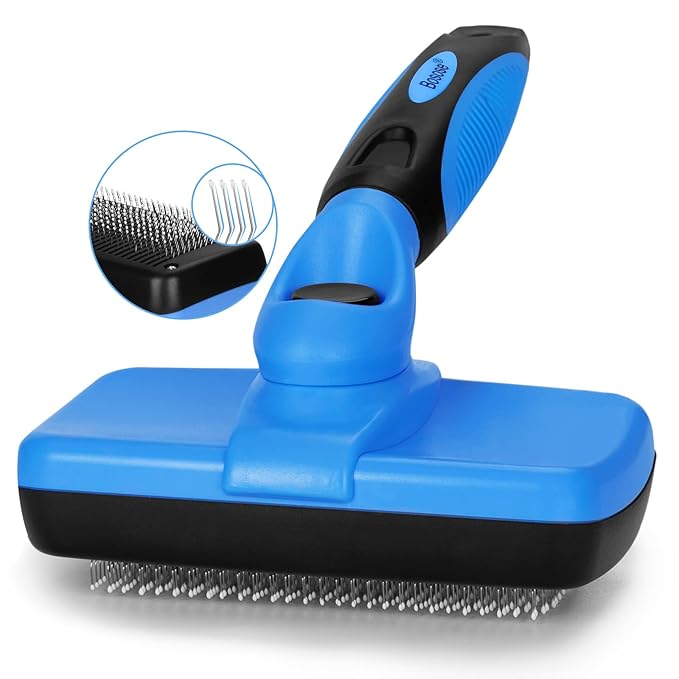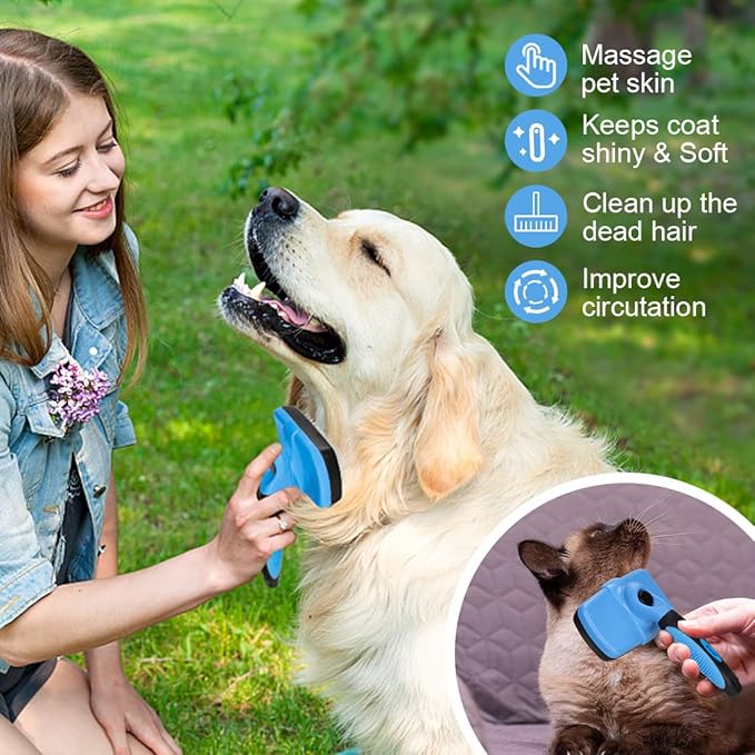 Slicker Brush - Self Cleaning Hair Brush for Dogs, Cats & Bunny - Grooming & Shedding Tool for All Pets - Non Slip Rubber Handle & Soft Bristles - Unisex, Blue