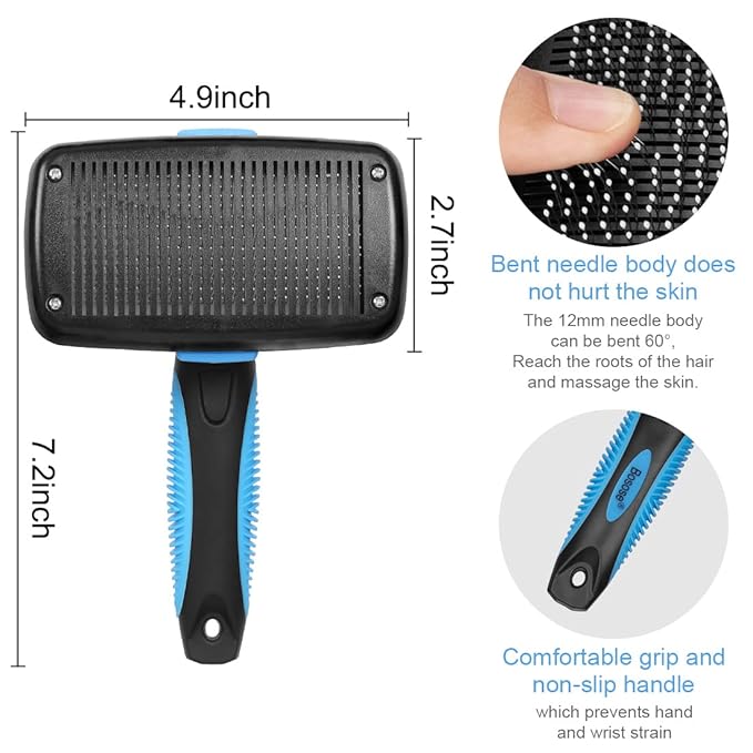 - COMFORTABLE & NONSLIP HANDLE Our pet brush is designed with a comfort-grip and nonslip handle, which also has a massage function for your hand and you won't get tired easily when you brush your pet.