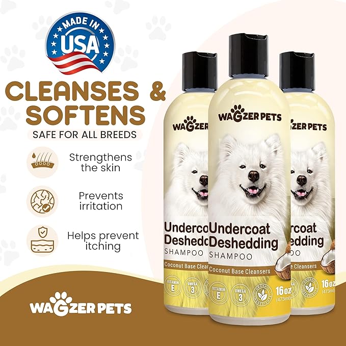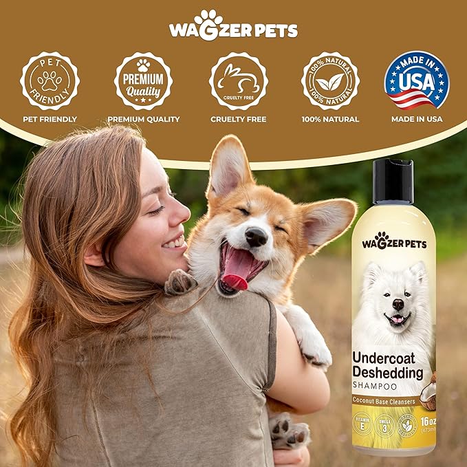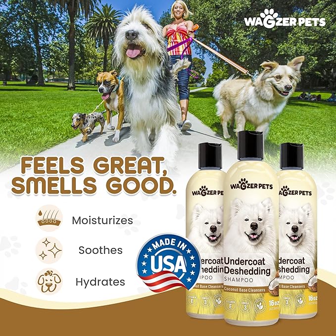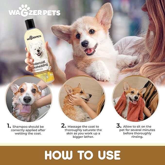 - Shedding Control Dog Wash - Wagzer Pets dog deshedding shampoo provides effective support to minimize excessive hair loss. This dog shampoo for shedding control helps keep your furry friend's coat in check and infuses your pet's skin with vitamin E as well as omega 3 and 6, which promotes a healthy and shiny coat.