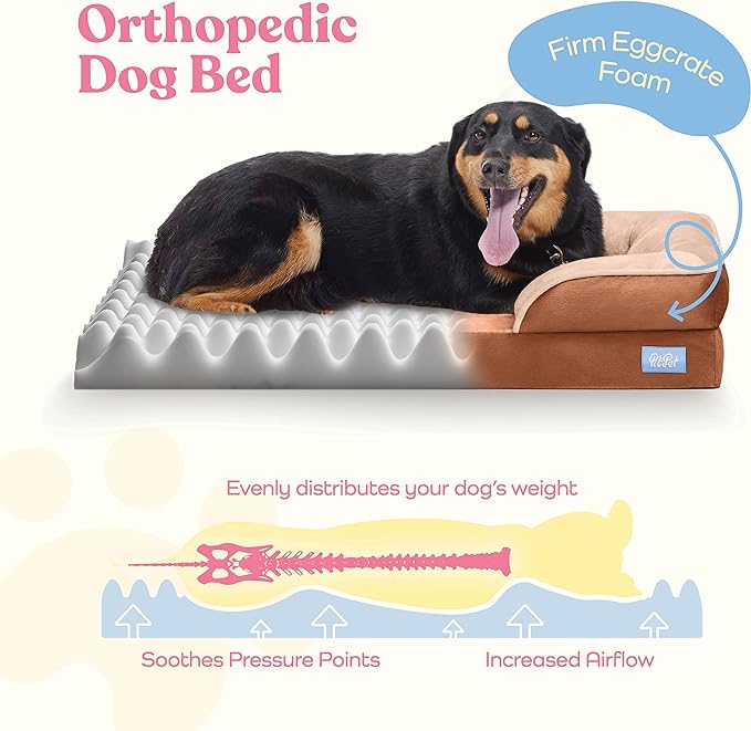 Orthopedic Sofa Dog Bed - Ultra Comfortable Dog Bed for Large Dogs - Breathable & Waterproof Pet Bed- Egg Foam Sofa Bed with Extra Head and Neck Support - (X-Large, Brown)