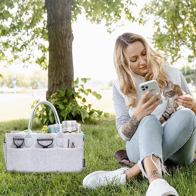- 【PREMIUM QUALITY】 The portable pet grooming tote is made of high quality felt material with enhanced stitching, which ensure long term use. Besides, this dog grooming storage bag has its sturdy handles, convenient to carry it for outdoor.