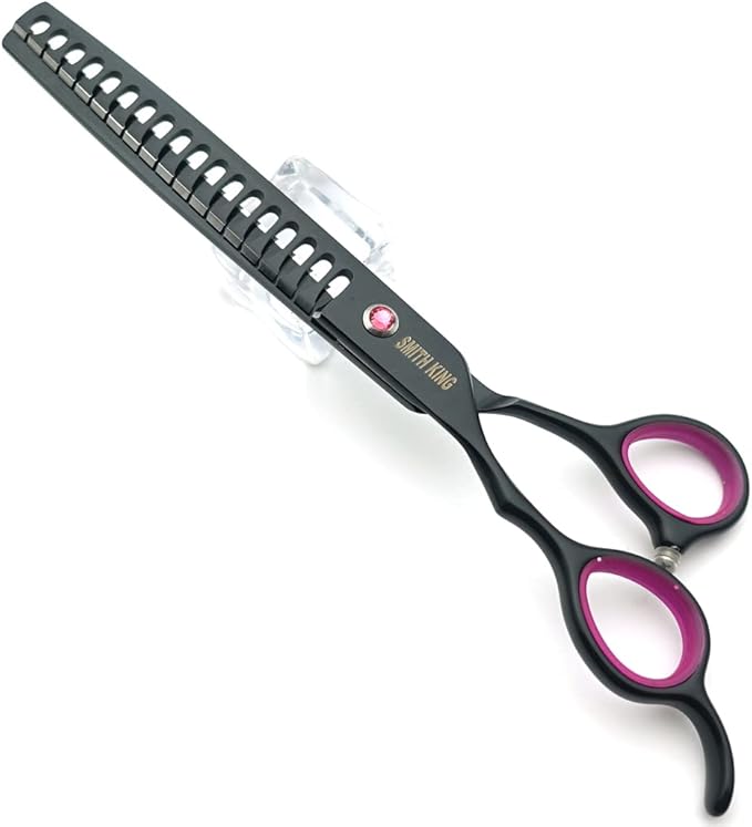 - SHARP & DURABLE EDGE. The edge line of the blade is evenly polished,which make the scissors durably sharp.With meticulously crafted clear tip of tooth ,the thinning scissors are sharp and do not clip the hair.The edge of the curved scissors is 25°-30°,majority standard angle to satisfy most part of groomers.