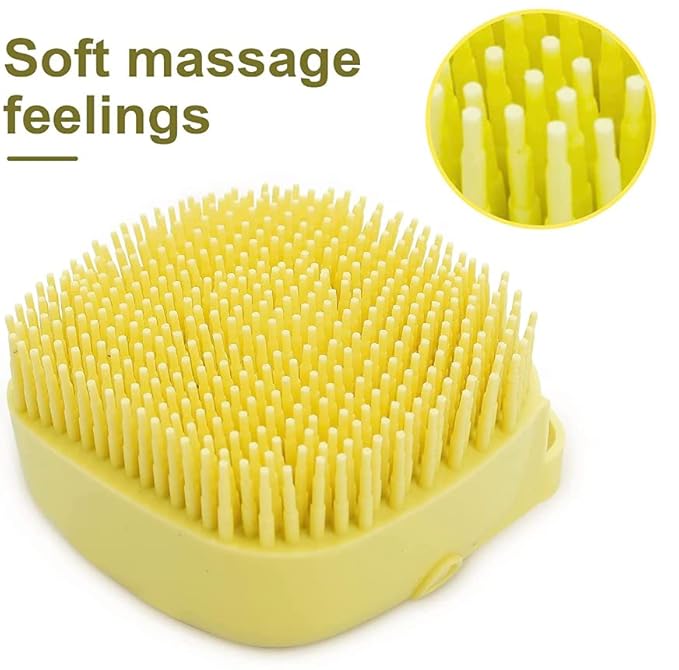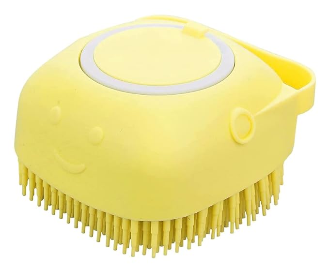Pet Bath Massage Brush Puppy Dog Cat Grooming Cleaning Soft (Yellow)