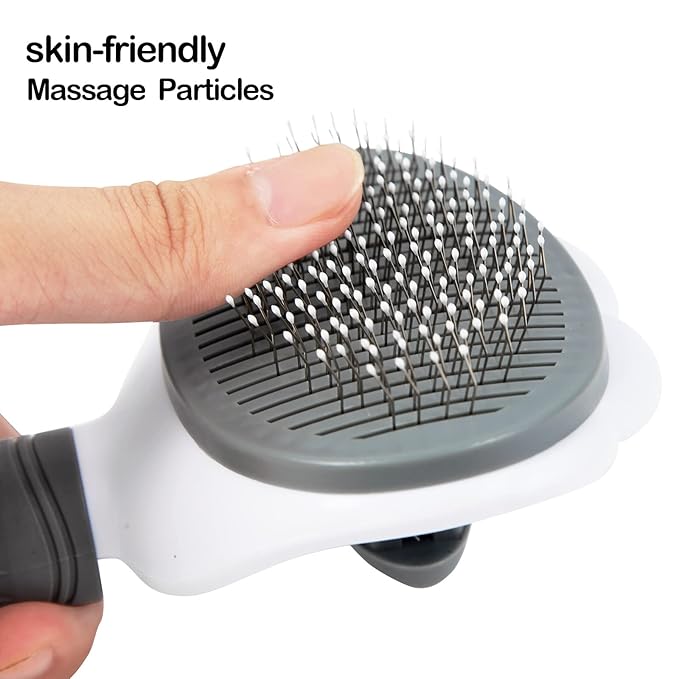 - 🐾MORE REASONABLE DESIGN🐾 : A non-slip ergonomic comfort grip made of silicone and thumb rest allow easy control. The round bead shedding brushes can massage your pets and keep your pet's skin from scratching. The design of stainless steel needles with a 60 degree bend and some elasticity is good for preventing skin disease and increasing blood flow.The shape of the back paws is more attractive to pets' curiosity.