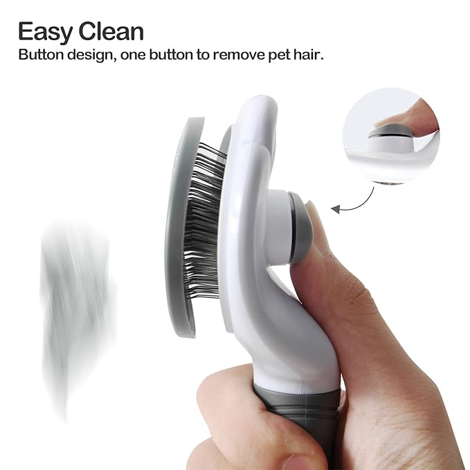 - 🐾VERY EASY TO CLEAN🐾 : one-click cleaning button. All you have to do is press the clean button to retract the bristles and wipe hairs away. and the hair will be removed from the brush super easily. And our pet brush is washable, which can keep the brush hygienic.