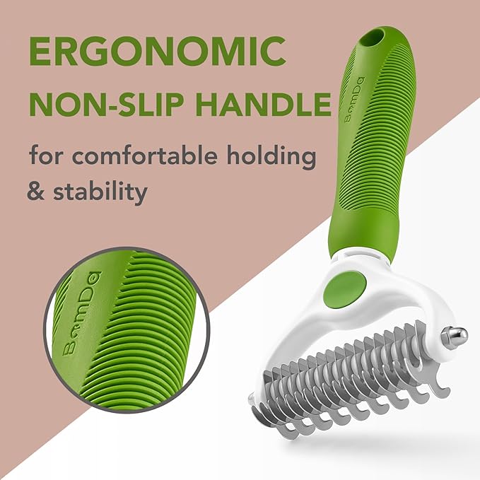Pet Grooming Brush- Double Sided Dematting and Deshedding Undercoat Rake Brush for Dogs and Cats, Green
