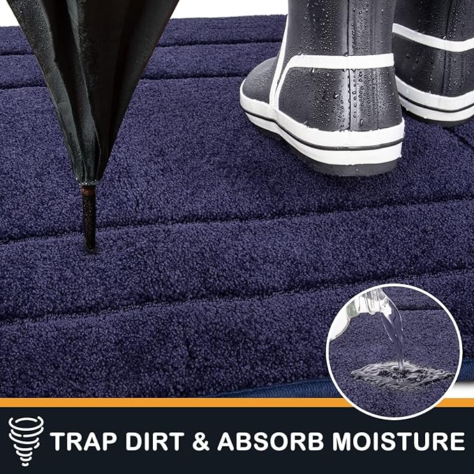 PURRUGS Dirt Trapper Door Mat 24" x 36", Non-Slip/Skid Machine Washable Entryway Rug, Dog Door Mat, Super Absorbent Welcome Mat for Muddy Wet Shoes and Paws, Navy Blue
