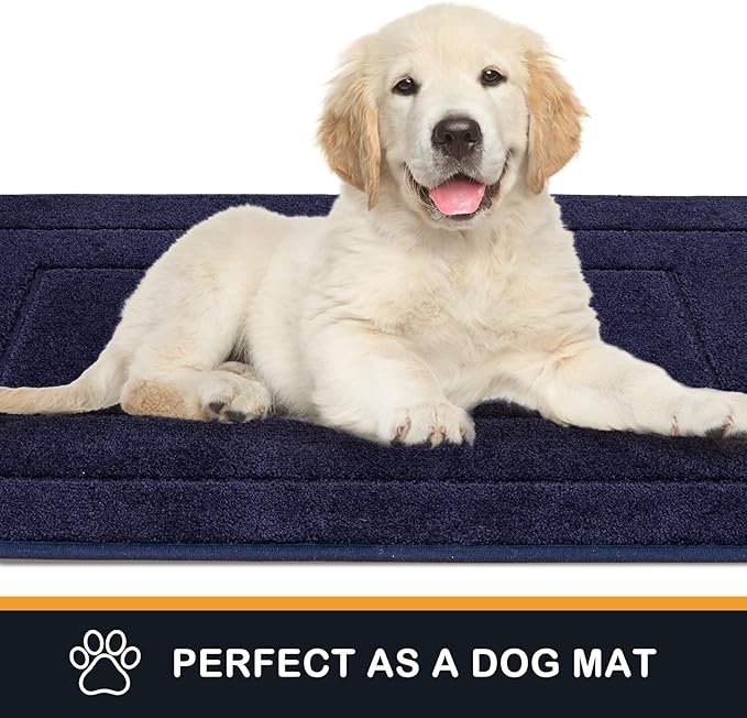 PURRUGS Dirt Trapper Door Mat 32" x 47.5", Non-Slip/Skid Machine Washable Entryway Rug, Dog Door Mat, Super Absorbent Welcome Mat for Muddy Wet Shoes and Paws, Navy Blue
