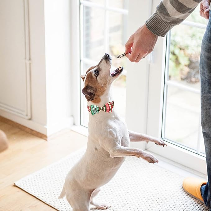 MR. CHUBBYFACE Christmas Plaid Dog Collar for Boy Girl Dogs Adjustable Red Green Dog Collar Bowtie for Small Medium Large Dogs