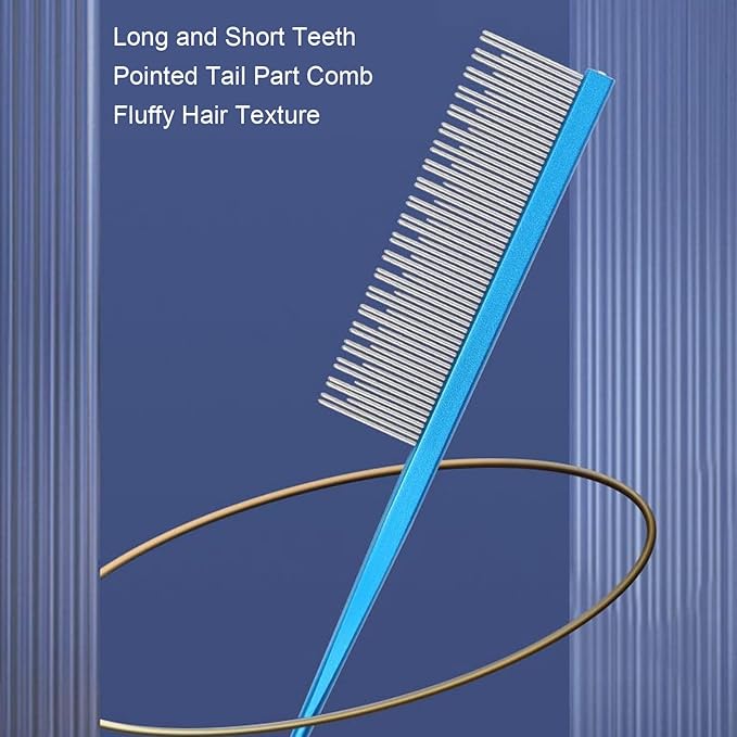 Round tooth metal dog comb is used for pet hair comb of dogs and cats to remove hair knots and entanglement. Professional pet hair comb styling comb(blue)