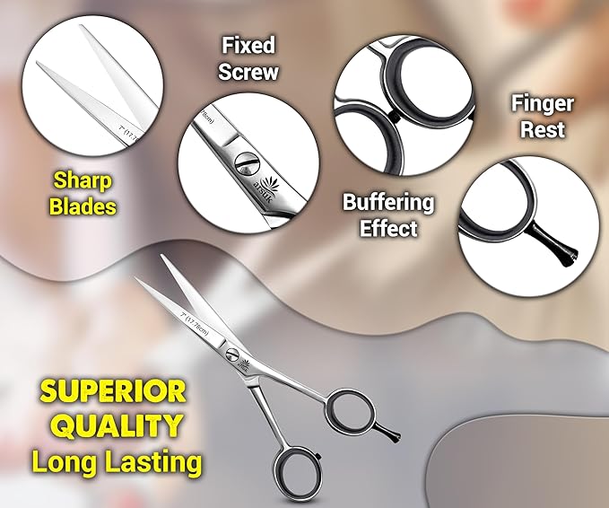 ARSUK Dog Grooming Scissors 7-Inch – Professional Pet Hair Cutting Shears for Dogs, Cats & Horses – Straight Stainless Steel Trimming Scissors with Rubber Grip & Finger Rest