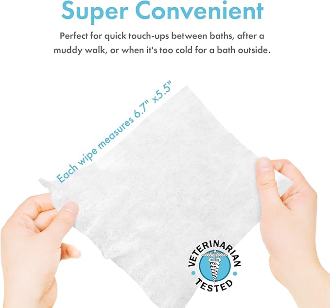 - Gentle For Your Furry Friend - The 6.7 x 5.5" inch wipes keep your pet's coat soft, shiny and smelling great. No parabens or sulfates. Veterinarian tested for daily use. Contains natural ingredients.