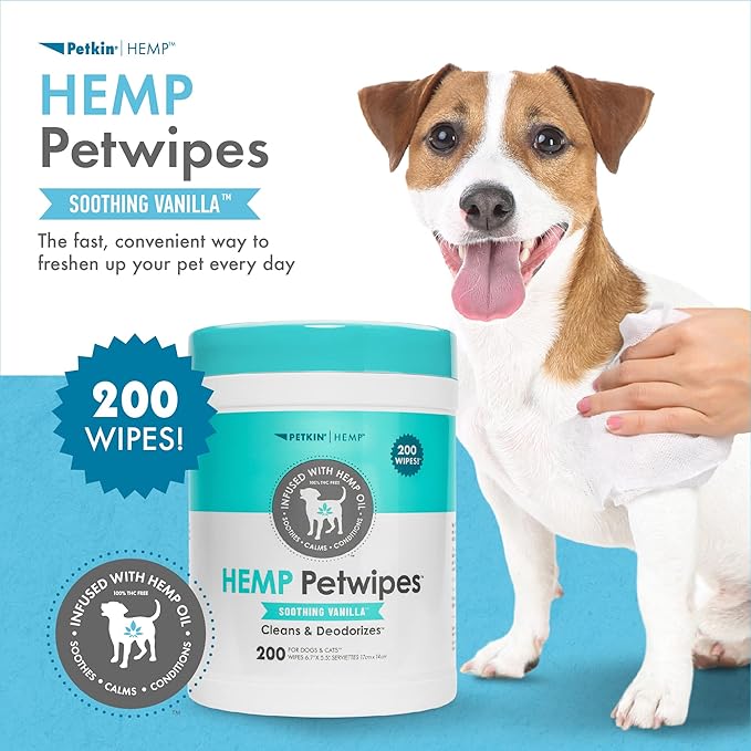 - Petkin Pet Wipes For Dogs and Cats - Our Hemp grooming wipes are a fast, convenient way to keep your pet clean and healthy every day. These calming dog wipes are extra gentle and ideal for daily use around your pet's eyes, ears, face, body and butt. Includes 200 wipes.
