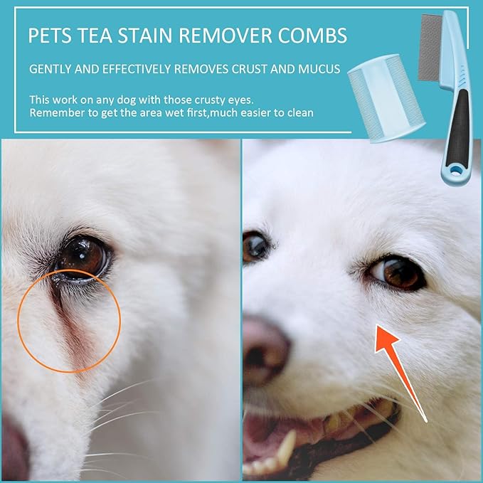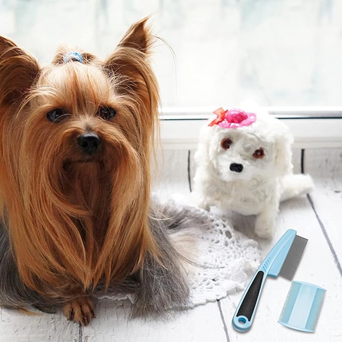 Fine Tooth Metal Comb for Removing Lice and Tear Stains, 2Pcs for Dogs, Cats, and Small Pets