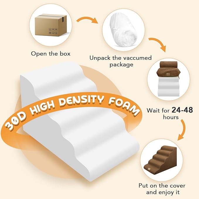 - 【Vaccum Compression】The stairs adopts vacuum compression packing, so please take the foam base out and wait for 24-48 hours until it restores original shape. No tools are required to install. Lightweight material is convenient to carry and use both indoor and outdoor.