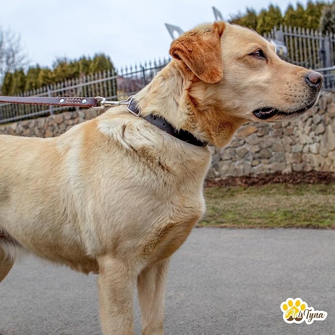 - Secure & Comfortable Leather Dog Collar: Engineered for medium dogs with a locking system that withstands up to 400lb pulls. Walk your dog with confidence