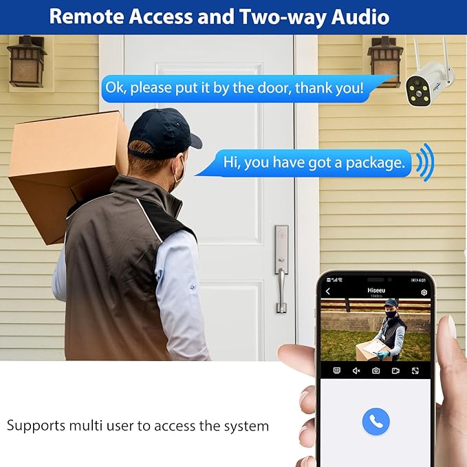 - AI Human Detection & Safety Guarante: the Hiseeu Security Camera is adoptted with advanced AI human detection technology. It distinguishes humans from animals or objects,which can prevent false alarms. When any intruder enters the monitoring range, the alert and ring will be triggered in your screen, Guarantee your family's and property in safety. If it has entered the night and the light around the camera is dim, the light sensor will activate the floodlight.